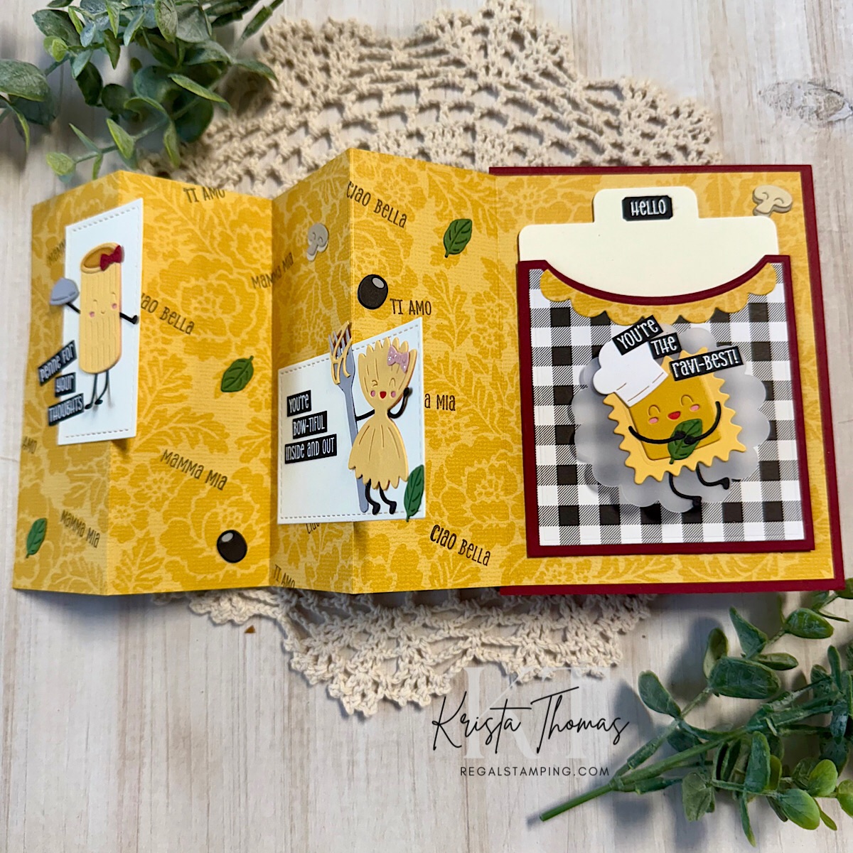 There’s nothing more delicious than a plate full of cheesy, saucy pasta! Now you can create adorably satisfying greeting cards that feature Spellbinder’s newest collection-Buon Appetito! Let’s carb-load and celebrate these tasty new products! This collection revolves around pasta, sauces, cheeses, garlic, and other kitchen companions—transformed delightfully into crafting elements….